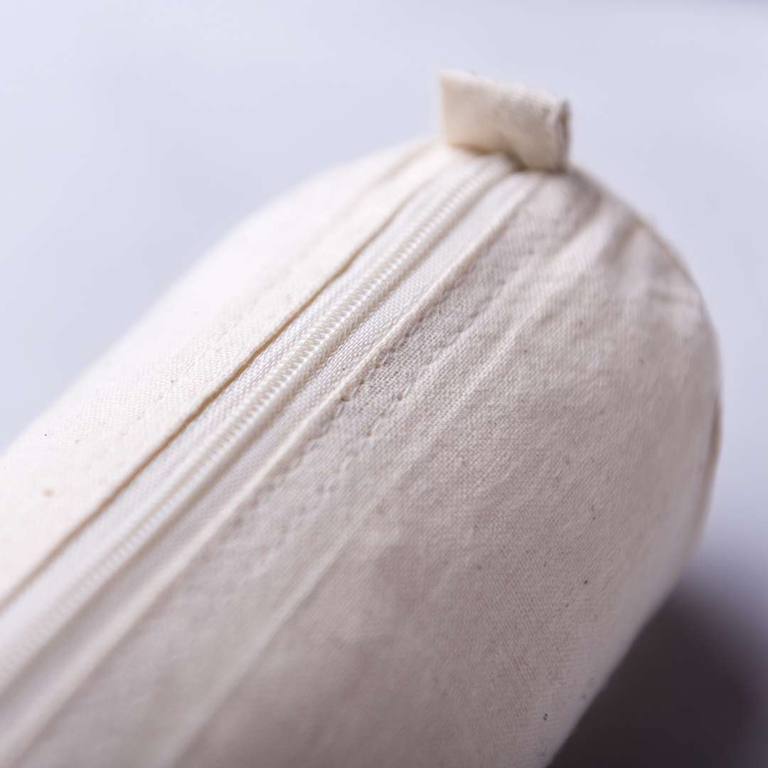 Astuccio linea natura in cotone ecru. Con classico design cilindrico, cerniera in tinta e pratiche impugnature per una facile apertura.