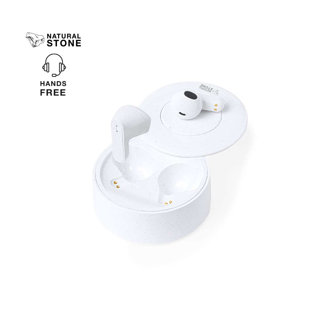 Auricolari in-ear realizzate con estratti di pietra naturale in combinazione con ABS resistente. Con connessione Bluetooth® 5.3 e batteria al litio integrata da 30 mAh in ciascun auricolare. Design ergonomico, con pulsante di controllo a sfioramento sull'auricolare e funzione vivavoce. Base con capacità di 250 mAh e indicatore di stato di carica a LED, con cavo di ricarica Type-C incluso. Scatola individuale in design kraft, con manuale di istruzioni in inglese e spagnolo.Realizzato con estratti di pietra naturale, che contribuiscono a ridurre l'uso di plastica e forniscono una finitura liscia e resistente.Le capacità indicate su tutte le nostre batterie ausiliarie esterne sono reali, in quanto comprendono tutte batterie di grado A e non riciclate, con una durata di almeno 500 cicli di carica e conformi alle normative CE.Inoltre, sono prodotte secondo gli standard RoHS e in conformità ai seguenti requisiti di sicurezza:Sistema di protezione da sovraccarico del power bank.Sistema di protezione dalla scarica completa per una maggiore durata del power bank.Sistema di blocco per prevenire i cortocircuiti.Sistema di trasferimento costante della carica, in base alla capacità del dispositivo di destinazione.