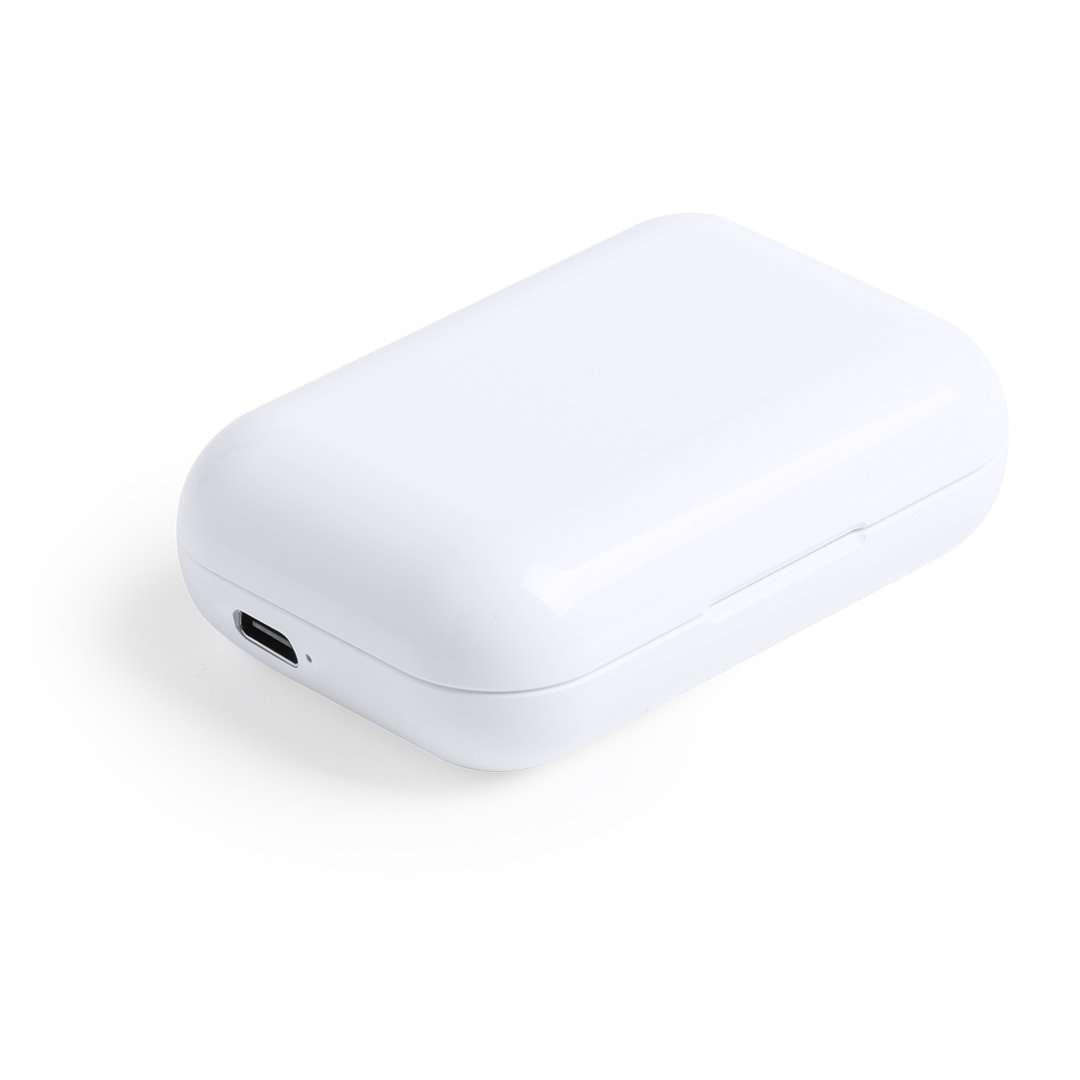 Cuffie in-ear con elegante finitura bianca e connessione Bluetooth® 5.0. Design ergonomico, con pulsante di controllo a sfioramento integrato nell'auricolare e base di ricarica abbinata. Funzione viva voce e ricaricabili, con cavo Tipo C incluso. Presentate in una custodia individuale di lusso con coperchio incernierato e un'attraente scatola di design.