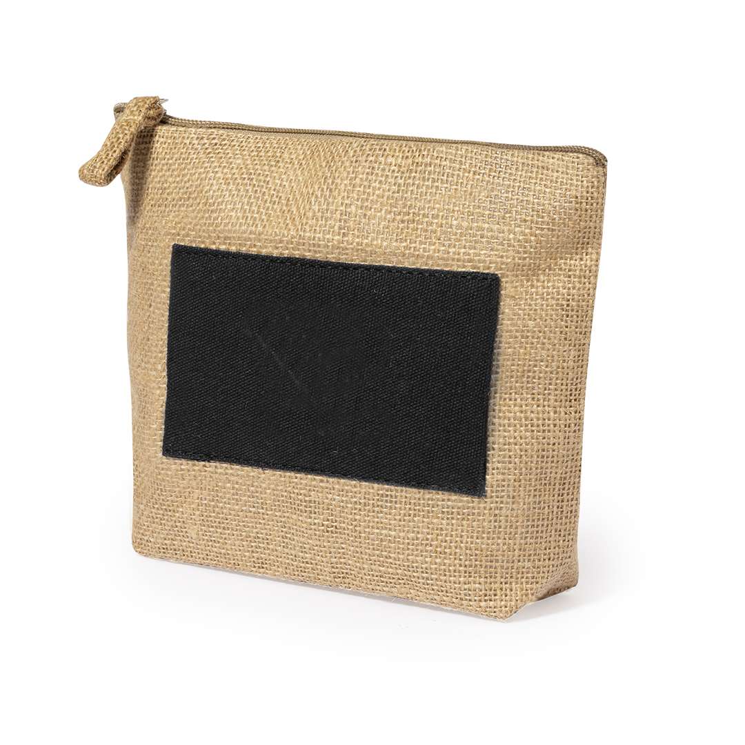 Beauty case multiuso in una combinazione di iuta laminata e cotone naturale. Con chiusura a zip e manico in iuta abbinato. Parte centrale in cotone di diversi colori.