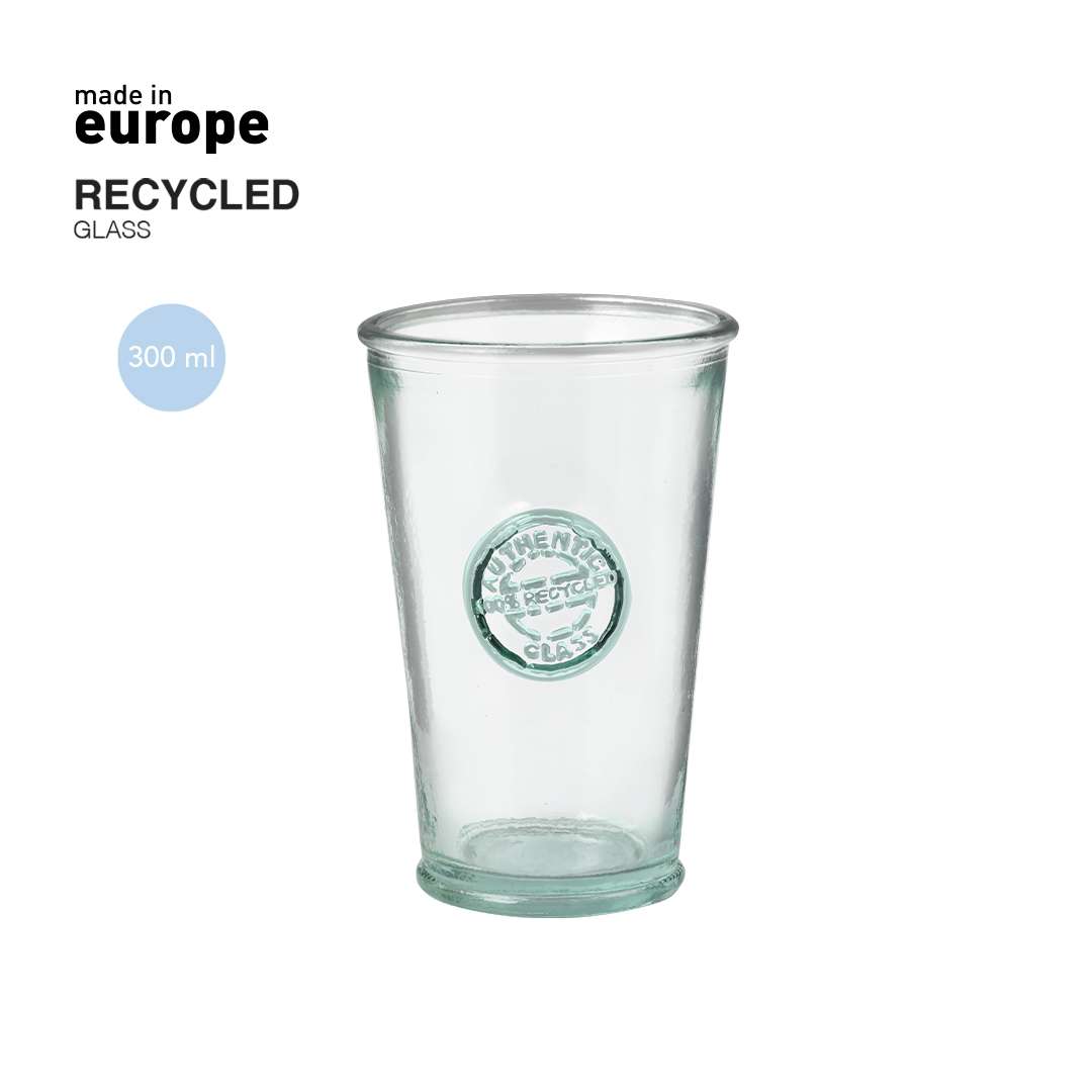 Bicchiere della linea Natura con capacità da 300 ml. Fabbricazione europea e realizzata in vetro riciclato GRS (Global Recycled Standard), che garantisce l'origine riciclata del materiale utilizzato per la fabbricazione del prodotto.