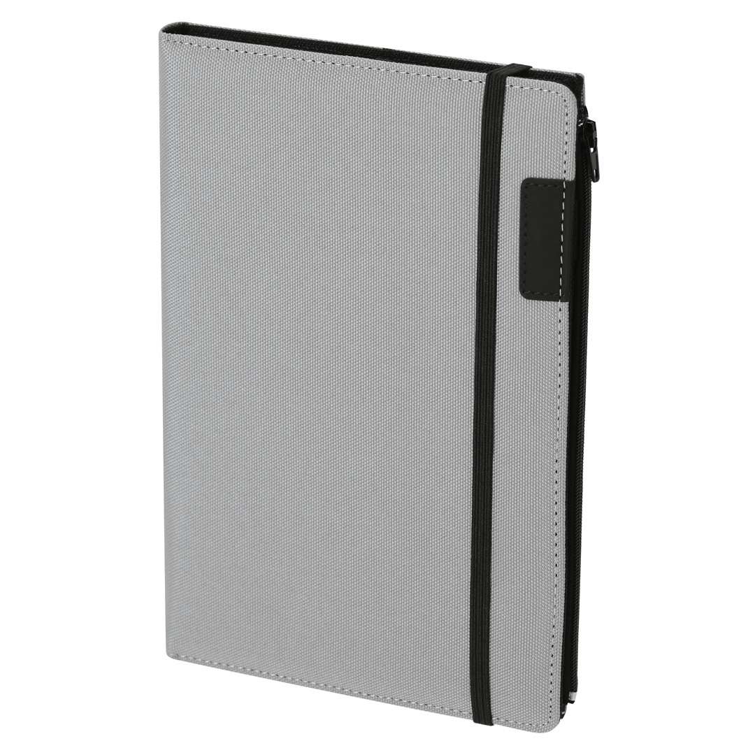 Taccuino con copertina. Contenuto:- Taccuino formato A5, con copertine rigide e 100 fogli a righe singole.-Copertina realizzata in RPET 600D, con utile tasca laterale con zip, ideale per tenere a portata di mano gli oggetti personali. Rimovibile e riutilizzabile in altri modelli di taccuini, diventando una soluzione versatile e sostenibile. Con portapenne e chiusura elastica di colore nero. Logo RPET sulla copertina posteriore.Il materiale RPET è realizzato con plastica riciclata, promuovendo così il riutilizzo dei rifiuti di plastica e aiutando la sostenibilità del pianeta.
