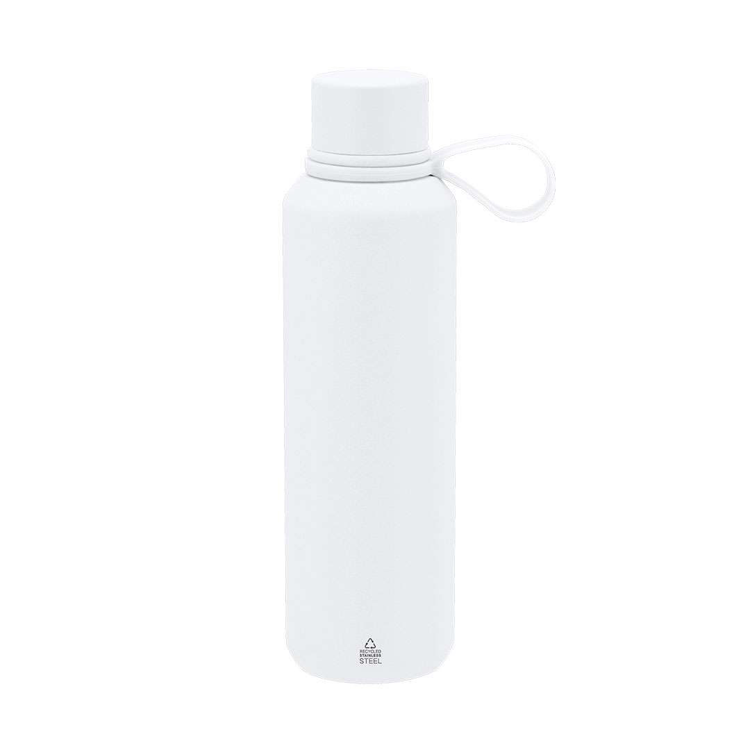 Bottiglia termica da 630 ml di capacità, realizzata in Acciaio Inox Riciclato a doppia parete. Include maniglia in silicone abbinata. Priva di BPA. Con distintivo acciaio inox riciclato. L'acciaio è uno dei materiali più richiesti e che può essere trovato quasi ovunque, da prodotti di uso quotidiano a grandi costruzioni. Con innumerevoli proprietà, tra cui la durabilità e l'elevato grado di riutilizzo, lo rende un'alternativa molto apprezzata nelle soluzioni di sostenibilità. Adeguatamente trattato, consente di ottenere nuove risorse di utilizzo infinito.