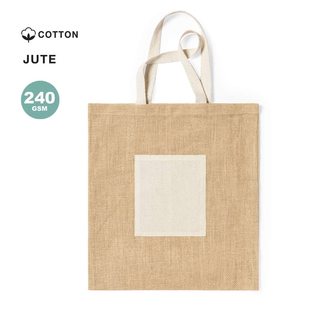 Borsa prodotta in una in resistente combinazione con corpo in juta 240g/m2 e manici in cotone, il tutto in tono naturale. Finitura cucita, con manici medi rinforzati. Tasca frontale in cotone e resistenza fino a 6 kg di peso.