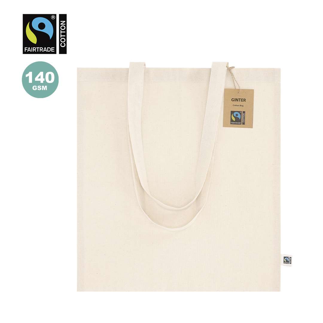 Borsa realizzata principalmente in cotone di 140g/m2. Con certificazione Fairtrade (Commercio Giusto), un sistema commerciale solidale e alternativo al convenzionale che persegue lo sviluppo dei popoli e la lotta contro la povertà. Di finitura cucita, con manici lunghi di 70cm e resistenza fino a 7kg di peso. Inclusa etichetta Fairtrade e hangtag distintivo in cartone riciclato.