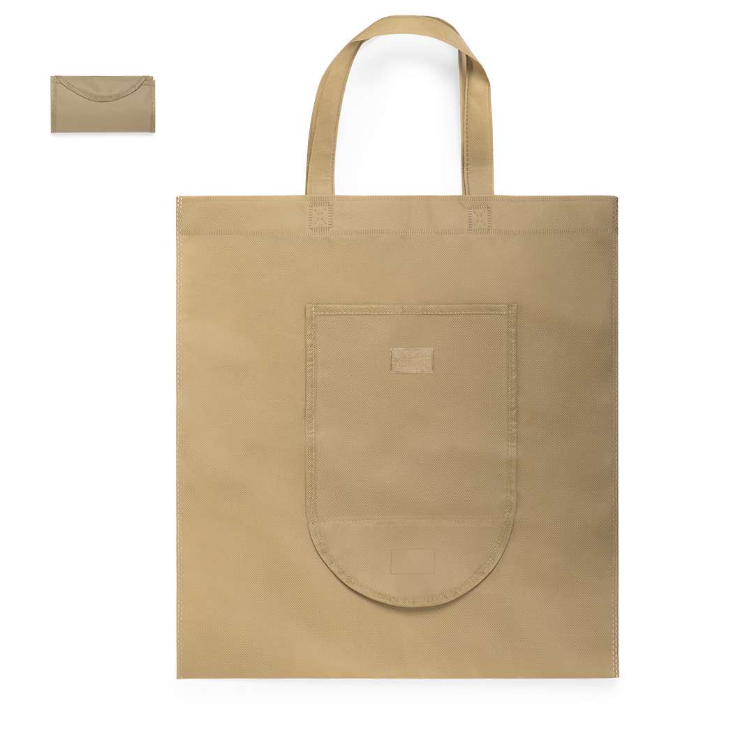 Borsa riutilizzabile di ispirazione naturale non tessuta pieghevole e riutilizzabile da 80 g / m2. Dimensioni 38x42 cm, finitura termosaldata e impugnature medie rinforzate da 40 cm. Piega di piccole dimensioni con chiusura a bottone per un trasporto confortevole. Resistenza al peso fino a 7 kg.
