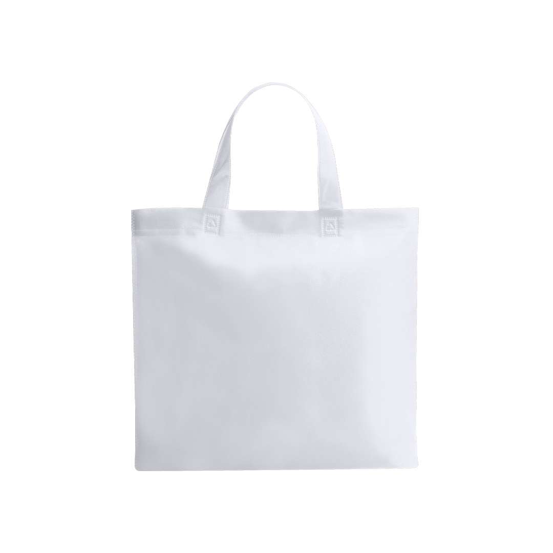 Borsa in TNT da 70 g/m2 di colore bianco, appositamente studiata per la stampa in sublimazione. Finiture termosaldate e manici corti rinforzati (36 x 3 cm). Resistenza fino a 6 kg di peso.