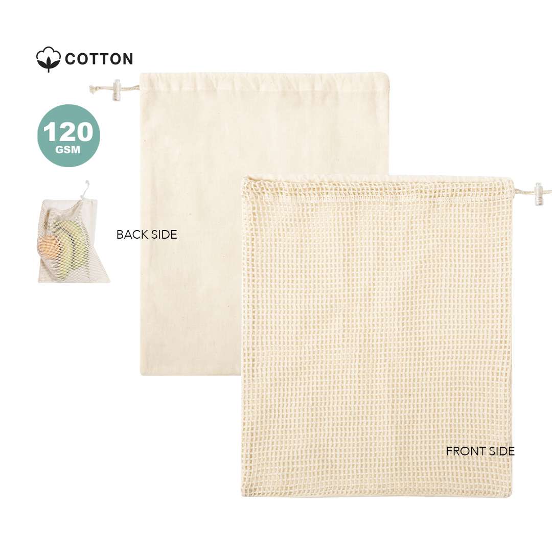 Borsa a rete linea Nature in cotone grezzo 120 g / m2, con lato liscio per la stampa. Chiusura con coulisse con accessorio di regolazione.
