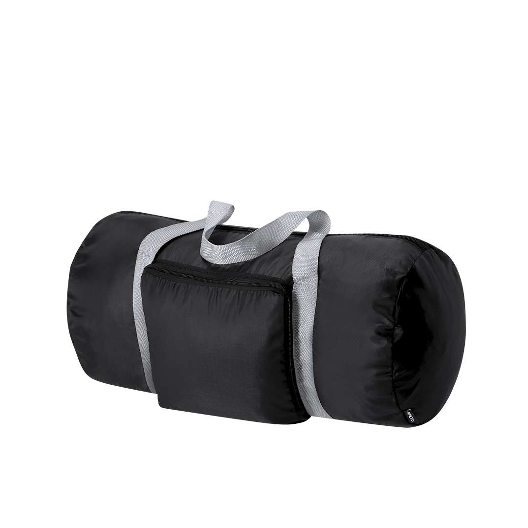 Borsa pieghevole realizzata in 290T RPET. Con chiusura a zip e accessori in colori grigio e nero. Include moschettone per un facile trasporto. Include etichetta RPET.Il materiale RPET è realizzato a partire da plastica riciclata, per promuovere il riutilizzo dei rifiuti plastici e aiutare la sostenibilità del pianeta.