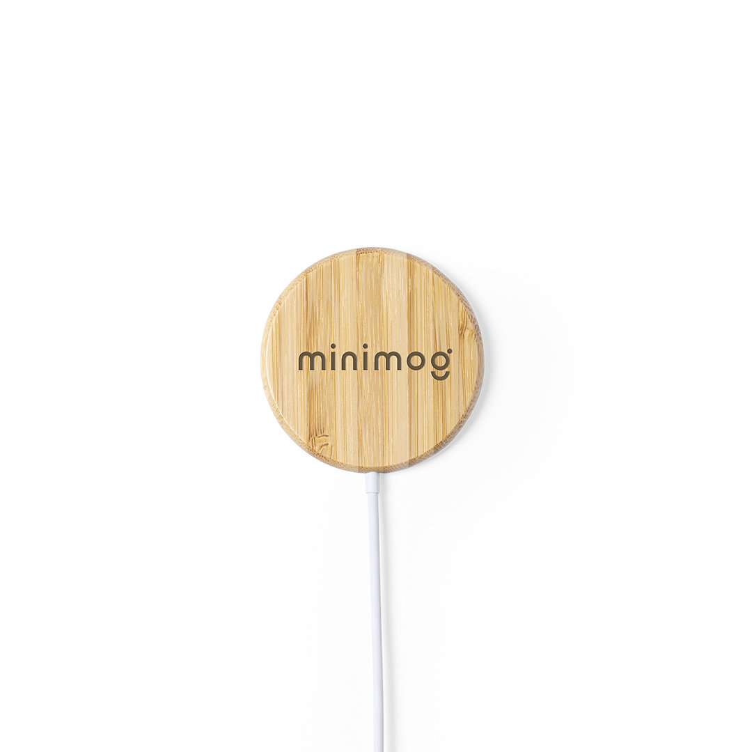 Caricabatterie wireless magnetico 10W linea nature, con corpo in resistente bambù. Con indicatore dello stato di carica e cavo USB da 1m. Include un accessorio metallico con adesivo 3M, extra forte e senza residui quando si stacca dal dispositivo, permettendo l'uso della funzione magnetica del caricatore su qualsiasi dispositivo mobile. Compatibile con i terminali dotati di tecnologia di ricarica wireless. Grande superficie di marcatura e presentato in un'attraente scatola di eco-design. Manuale d'istruzioni disponibile in inglese e spagnolo.