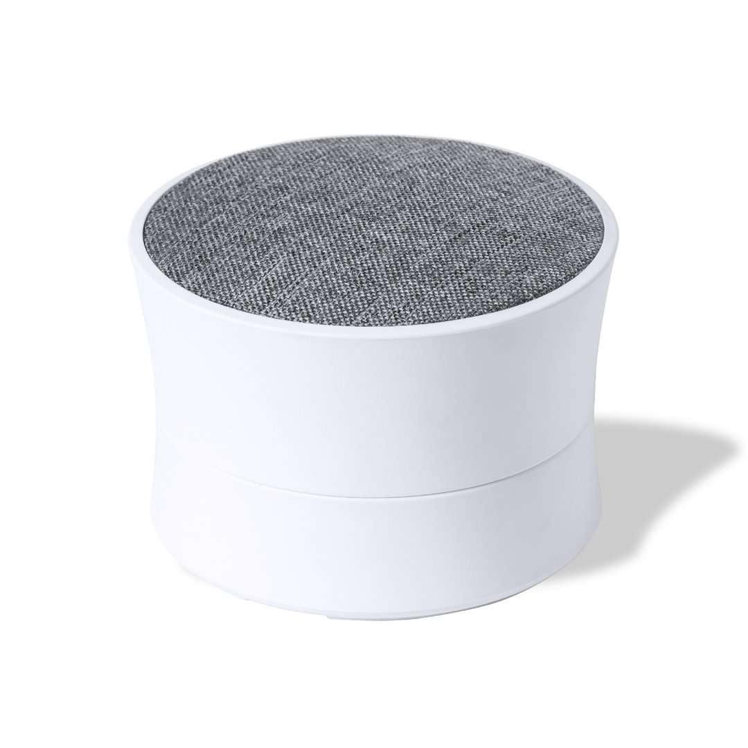 Altoparlante Bluetooth® dalle dimensioni compatte e dalla potenza di 3W. In una combinazione di corpo in ABS bianco e griglia in poliestere in un'ampia gamma di colori. Batteria al litio da 300 mAh, con cavo di ricarica di tipo C incluso. Confezionato singolarmente in una scatola kraft di design, con manuale di istruzioni in inglese e spagnolo.