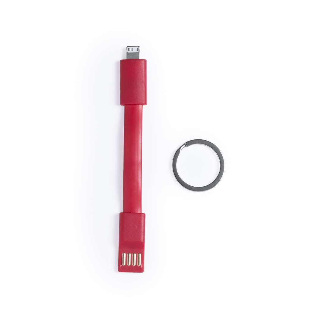 Caricabatterie USB portachiavi in un'ampia gamma di colori vivaci. Con doppia connessione micro USB/lightning. Presentato in un sacchetto individuale.
