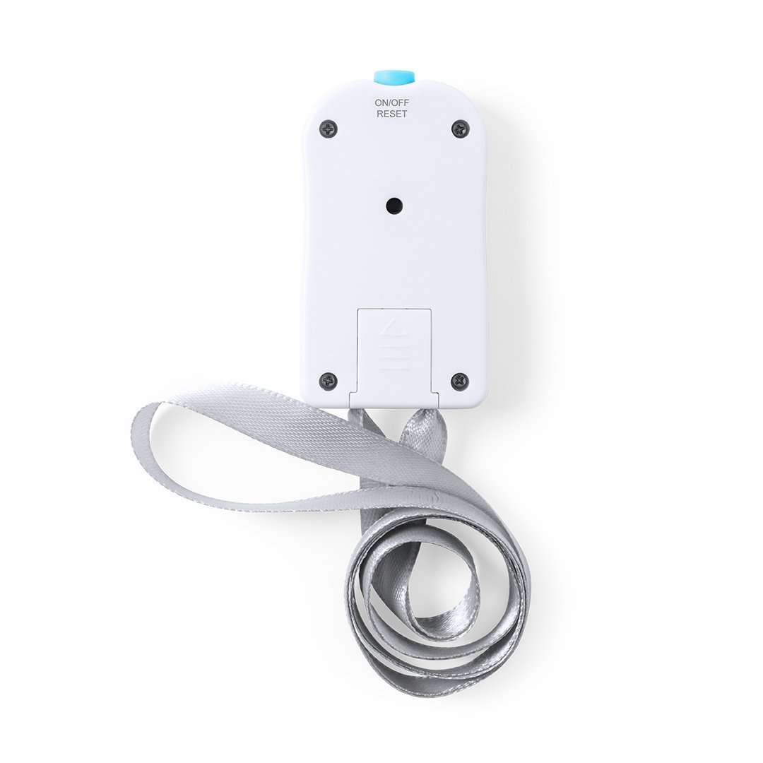 Contatore digitale di capacità realizzato in resistente materiale ABS con finitura lucida, con pratico nastro in poliestere e grandi pulsanti per aggiungere o sottrarre capacità. Display digitale con contatore a 4 cifre e pulsante di reset in alto. Ampia superficie del logo, appositamente studiata per la tampografia. Presentato in un'attraente scatola dal design individuale. Alimentato a batteria, pulsante incluso