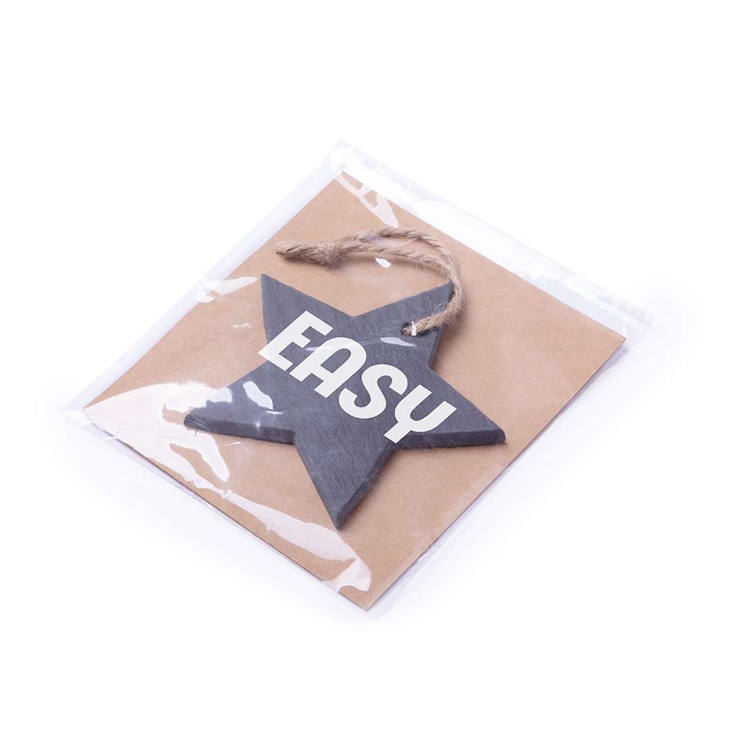 Decorazione natalizia in ardesia, con occhiello per appenderla e con eleganti disegni di alberi e stelle di Natale.