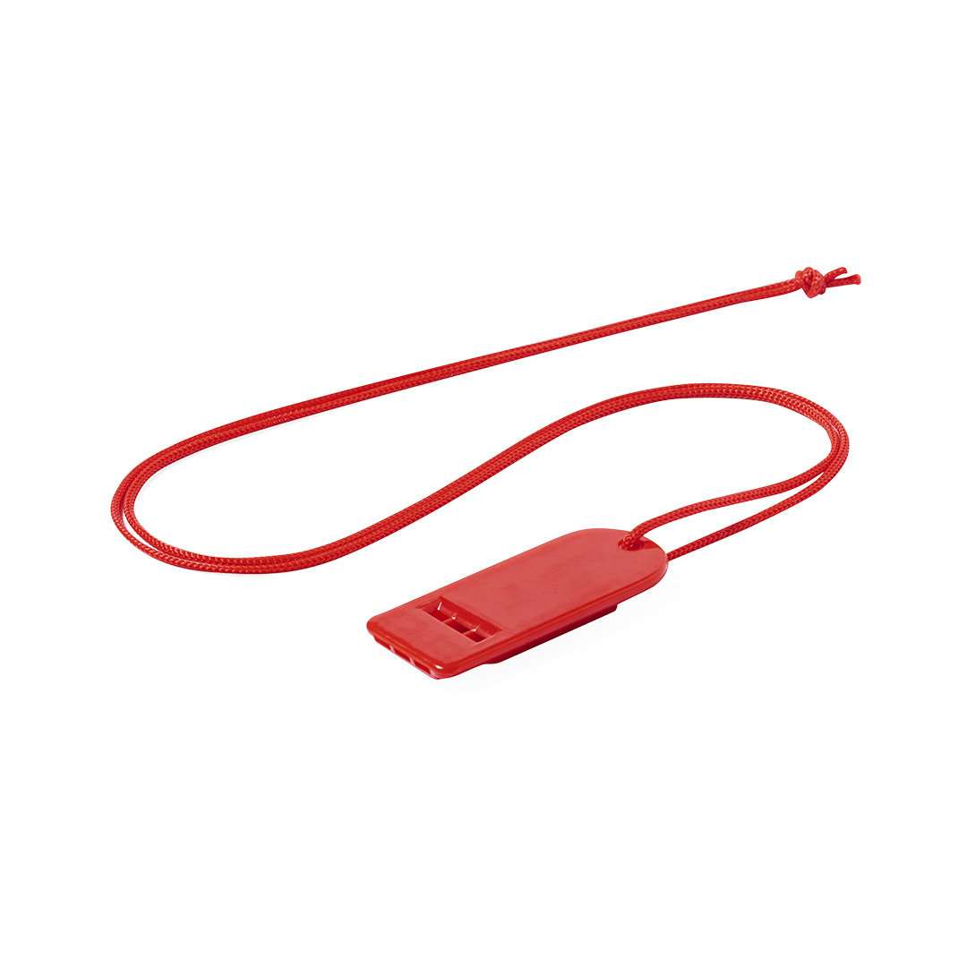 Fischietto con design originale e realizzato in PS resistente. Con tracolla abbinata e disponibile in una vasta gamma di colori.