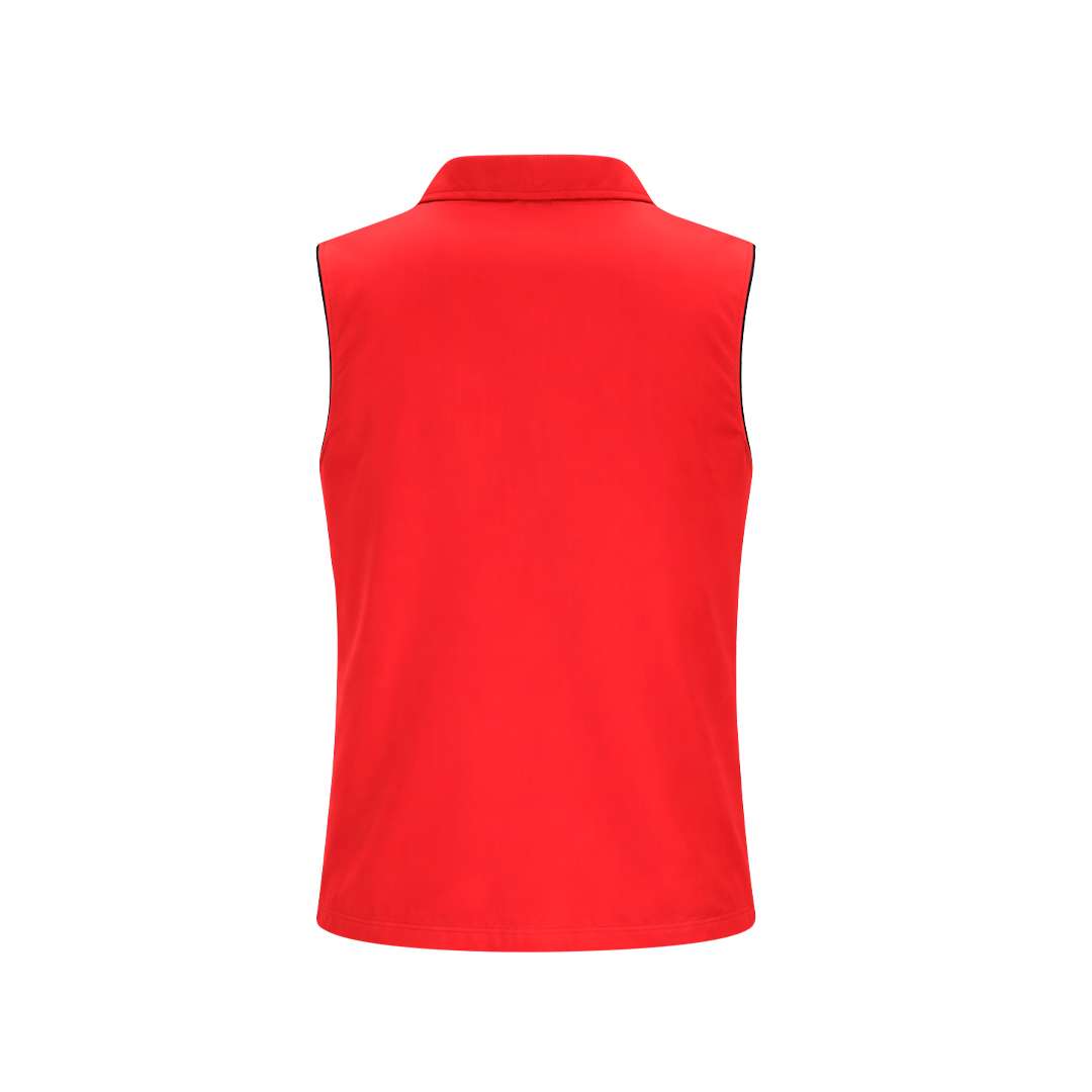 Gilet unisex in tessuto leggero e traspirante con fodera in rete bianca. Zip frontale nero e tirazip argentato. Comprende una tasca esterna sul petto destro e due tasche laterali con zip nere e tirazip. Presenta un mezzaluna all'interno del collo.
