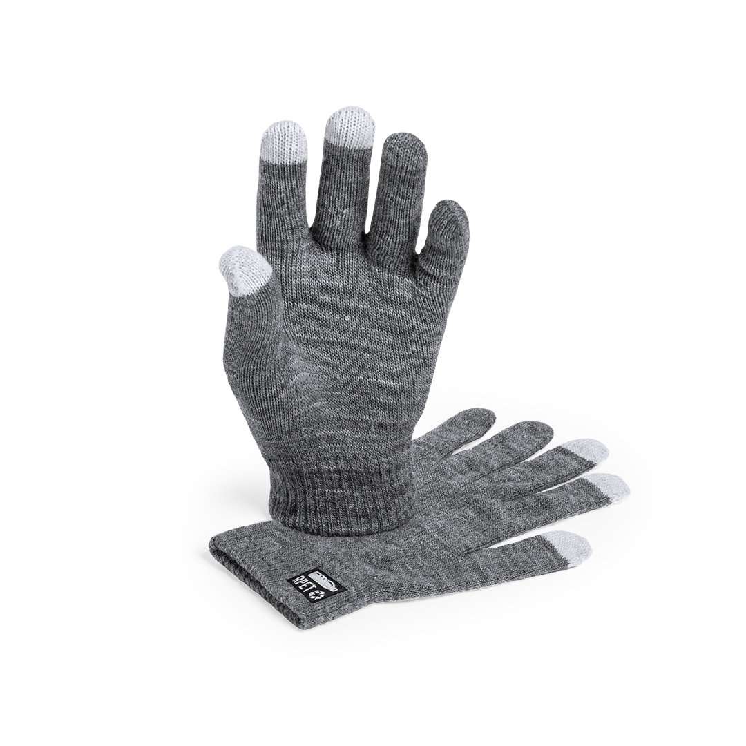 Pratico paio di guanti della Linea Nature per dispositivi touch screen. Finitura in poliestere RPET caldo e morbido, realizzato in plastica riciclata per favorire il riutilizzo dei rifiuti plastici e contribuire alla sostenibilità del pianeta. Funzione touch nelle dita del cuore, indice e pollice. Taglia unica da adulto, con etichetta con logo RPET.