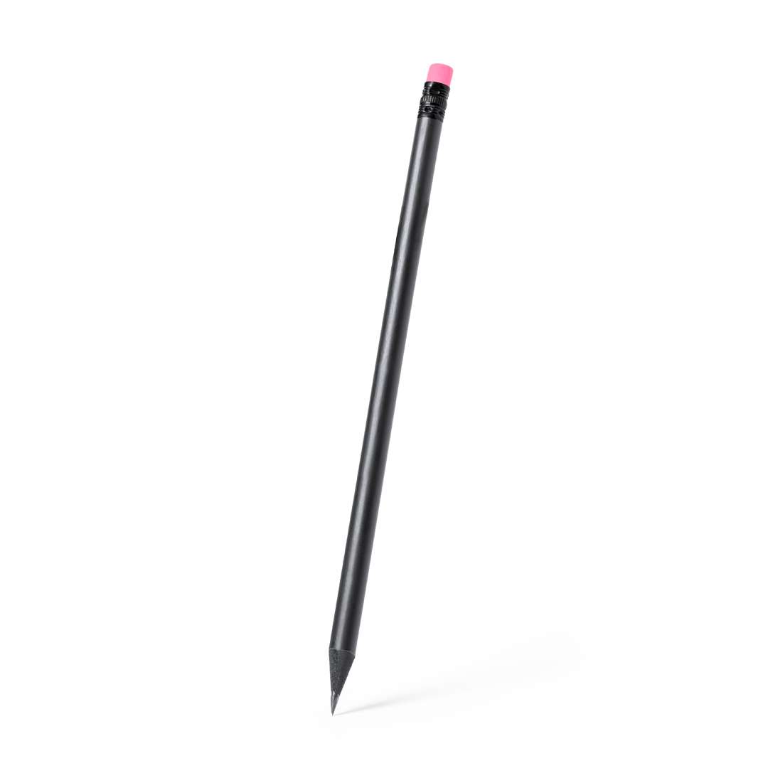 Elegante matita nera in legno naturale, con pratica gomma e disponibile in vari colori. Con mina nera e punta affilata.