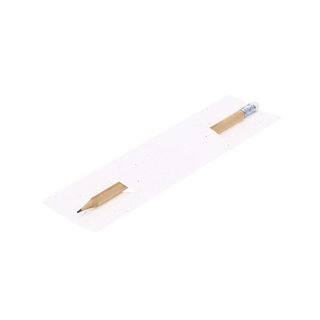 Pratico matita cilindrica presentata in una custodia di carta con semi, fabbricata in morbida legno naturale con gomma. La custodia include semi di petunia, trasformandola in carta piantabile al termine della sua vita utile. Include istruzioni per la piantagione sulla copertina posteriore.