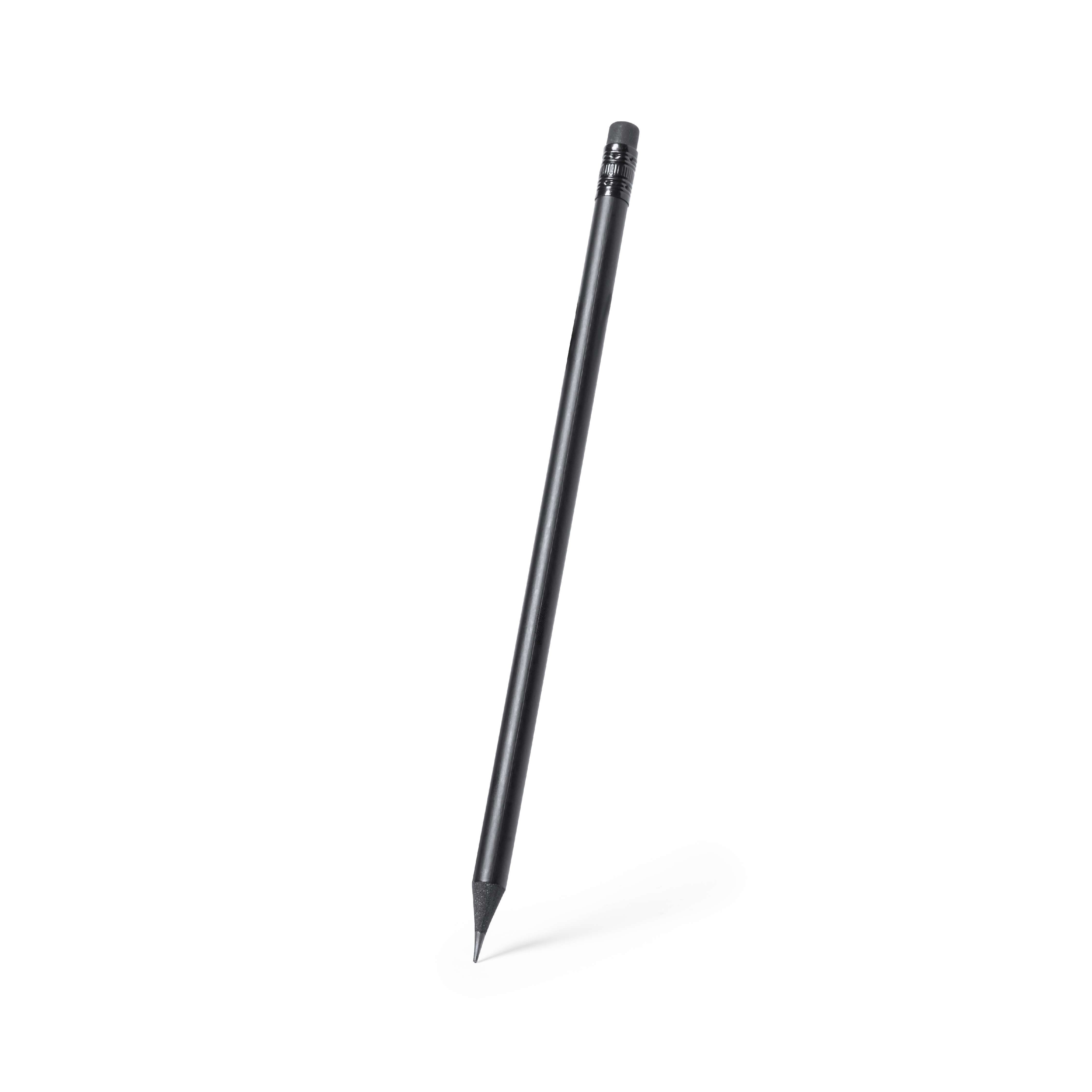 Matita in legno naturale con finitura nera opaca. Con gomma, mina nera e punta affilata.
