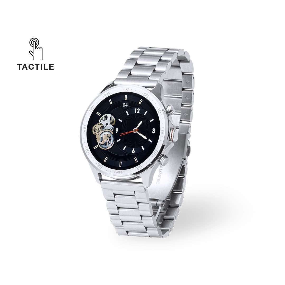 Smartwatch multifunzione dal design casual, con connessione Bluetooth®. Cassa dal design circolare e cinturino in acciaio inossidabile abbinato. Il display touchscreen TFT da 1,32 pollici e la batteria da 230 mAh lo rendono un gadget perfetto per tutti i tipi di sport, il tempo libero e le attività quotidiane.Molteplici funzioni disponibili, interfaccia multilingue e resistenza agli spruzzi d'acqua, con APP disponibile per iOS e Android. Confezionato singolarmente in una scatola di design, con manuale di istruzioni in inglese e spagnolo.