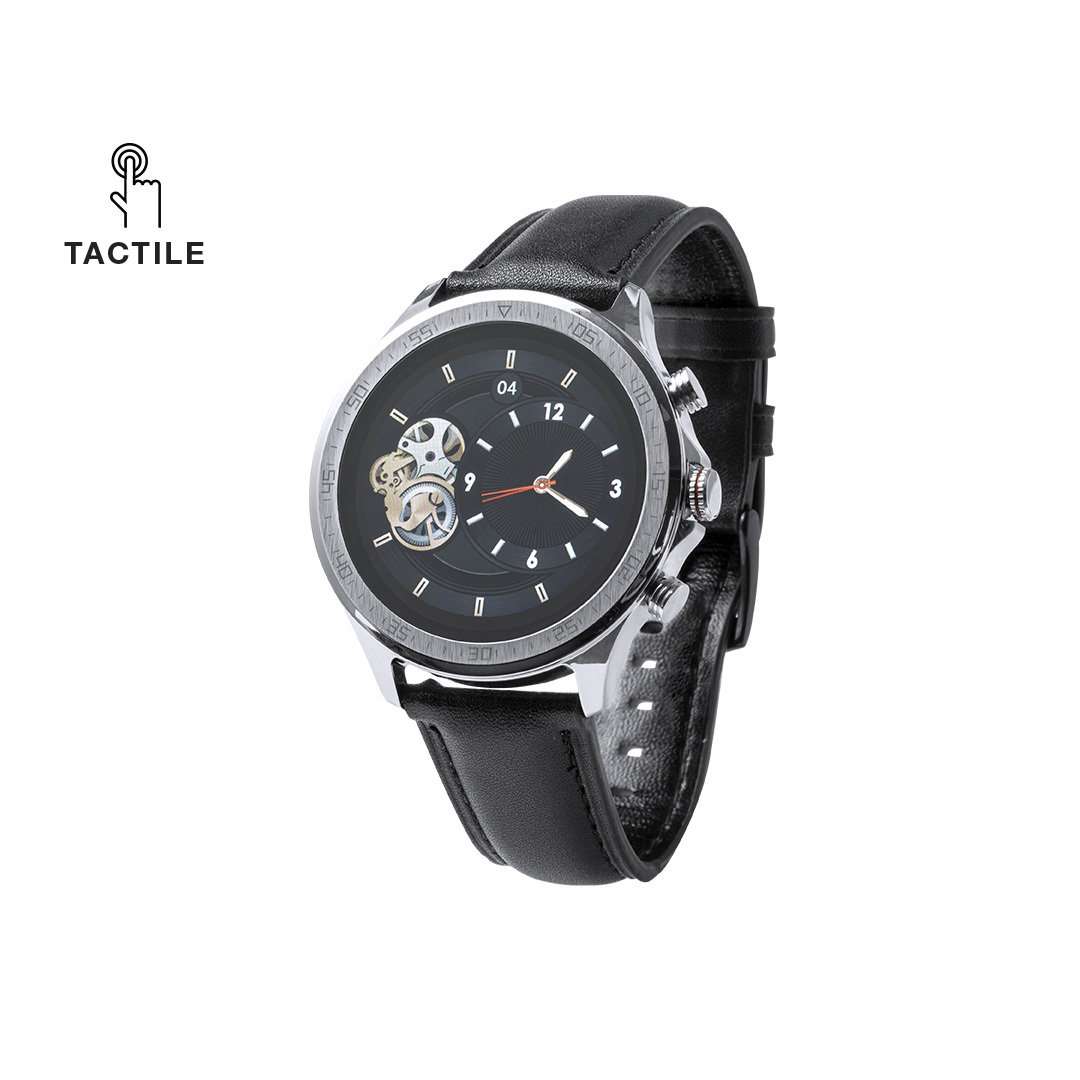 Smartwatch multifunzione dal design casual, con connessione Bluetooth®. Cassa circolare dal design elegante e cinturino in pelle. Il display touchscreen TFT da 1,32 pollici e la batteria da 230 mAh lo rendono un gadget perfetto per tutti i tipi di sport, il tempo libero e le attività quotidiane.Molteplici funzioni disponibili, interfaccia multilingue e resistenza agli spruzzi d'acqua, con APP disponibile per iOS e Android. Confezionato singolarmente in una scatola di design, con manuale di istruzioni in inglese e spagnolo.