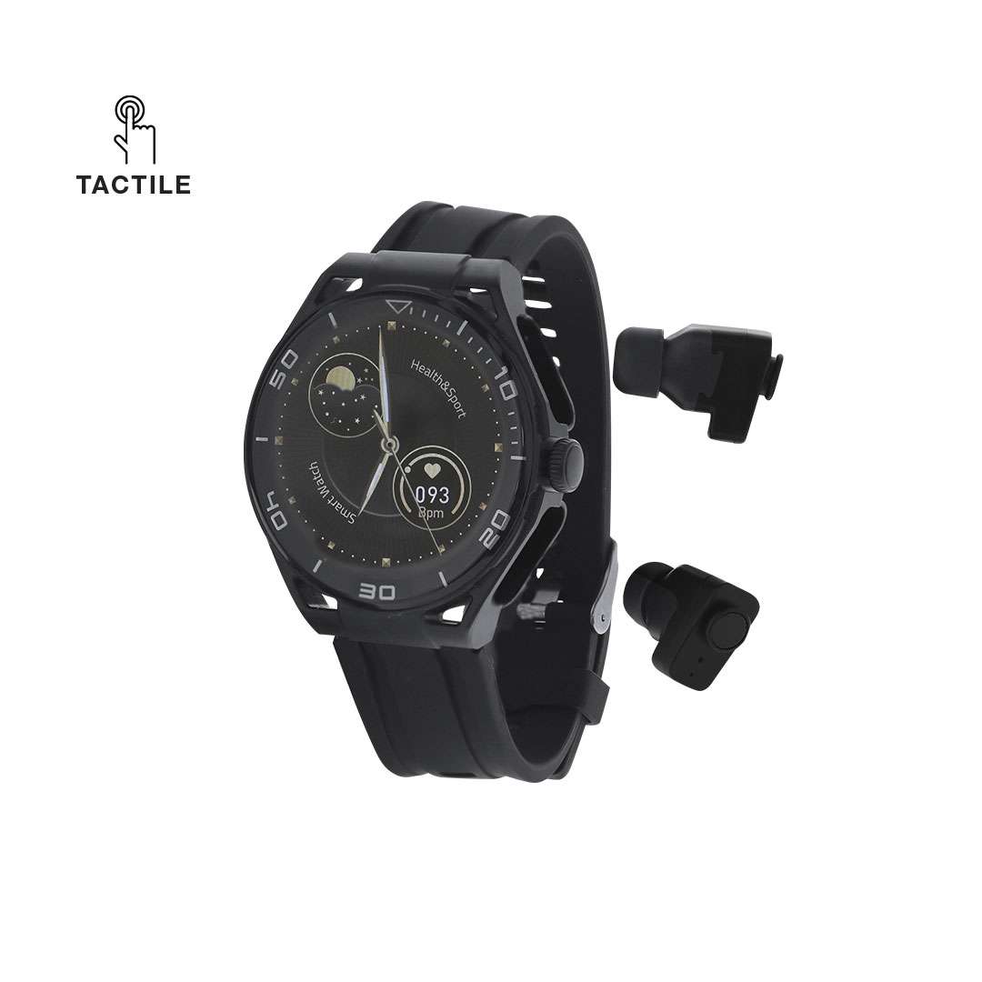 Orologio intelligente con connessione Bluetooth e auricolari integrati, con design sportivo di quadrante rotondo. Schermo touch IPS da 1,53" con risoluzione nitida. Include cinturini regolabili in TPU, sensori avanzati e batteria a lunga durata per un rendimento ottimale. Compatibile con iOS e Android, ideale per chiamate, musica e monitoraggio quotidiano. Adattato al tuo ritmo e alle tue esigenze, con funzione sport, misuratore di battito cardiaco, distanza, passi e calorie. Manuale di istruzioni disponibile in spagnolo e inglese.