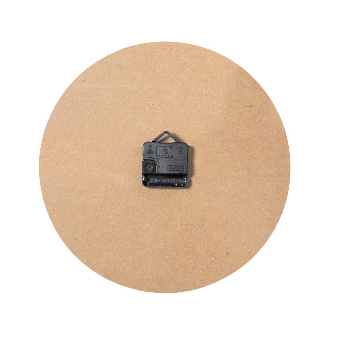 Orologio da parete in legno MDF e quadrante in tonalità naturale. Presentato in una scatola individuale dal design kraft. Alimentazione a batteria (1xAA non inclusa).