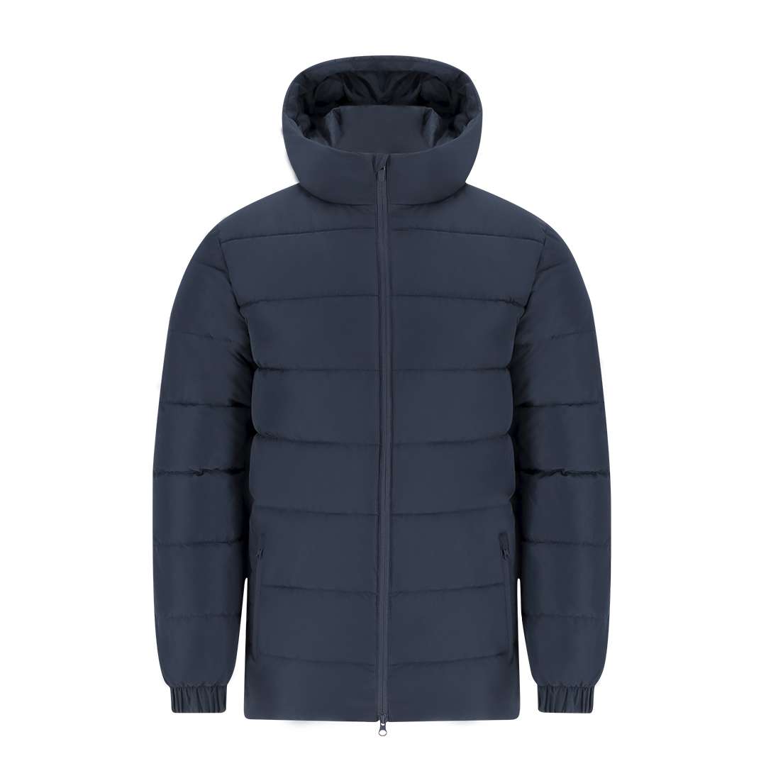 Parka imbottito unisex per bambini con cappuccio fisso e visiera integrata. Dotato di chiusura frontale con zip tono su tono a doppio cursore e protezione per il mento, polsini elastici per una vestibilità confortevole e due tasche laterali con chiusura a zip coordinata. Include accesso interno per marcatura su petto sinistro e schiena, ideale per la personalizzazione.