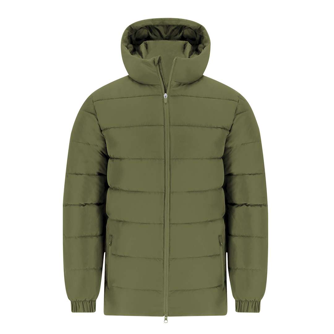 Parka imbottito unisex per bambini con cappuccio fisso e visiera integrata. Dotato di chiusura frontale con zip tono su tono a doppio cursore e protezione per il mento, polsini elastici per una vestibilità confortevole e due tasche laterali con chiusura a zip coordinata. Include accesso interno per marcatura su petto sinistro e schiena, ideale per la personalizzazione.