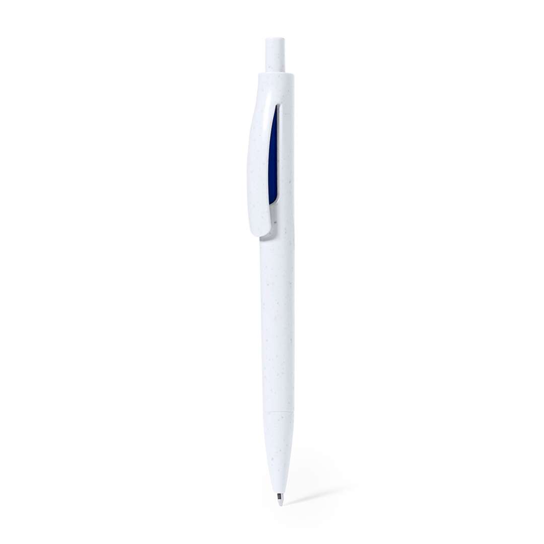 Penna con meccanismo a pulsante in ABS riciclato. Con finiture dai colori vivaci e fusto liscio e solido di colore bianco. Etichetta ABS riciclato sulla parte superiore della penna. In inchiostro blu.