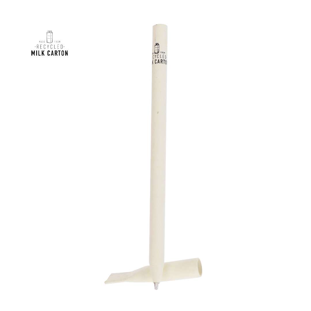 Penna a sfera con corpo realizzato con cartoni di latte riciclati e dettagli in colore bianco. Con chiusura a cappuccio e in inchiostro blu, con distintivo cartone di latte riciclato nel corpo.I cartoni di latte sono composti per la maggior parte da cartone e alluminio. Durante il loro processo di riciclo, si separano i diversi materiali del contenitore per il loro riutilizzo e nuovo impiego, contribuendo così a percorrere il cammino infinito dell'economia circolare. Questo materiale si caratterizza per il suo alto grado di riciclabilità, così come per la sua leggerezza e resistenza.