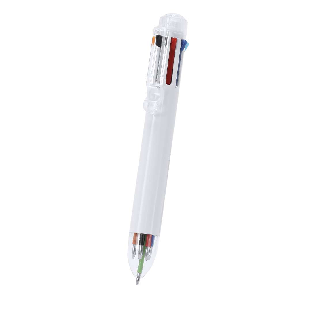 Penna con 8 diversi colori di scrittura in ABS. Questo strumento di scrittura offre una vasta gamma di colori in un'unica penna, con una scelta di 8 colori diversi per adattarsi a qualsiasi compito. Il suo design ergonomico e la sua funzionalità consentono di selezionare facilmente ogni opzione grazie ai pulsanti sulla parte superiore. Progettata con fusto bianco e clip e accessori trasparenti.