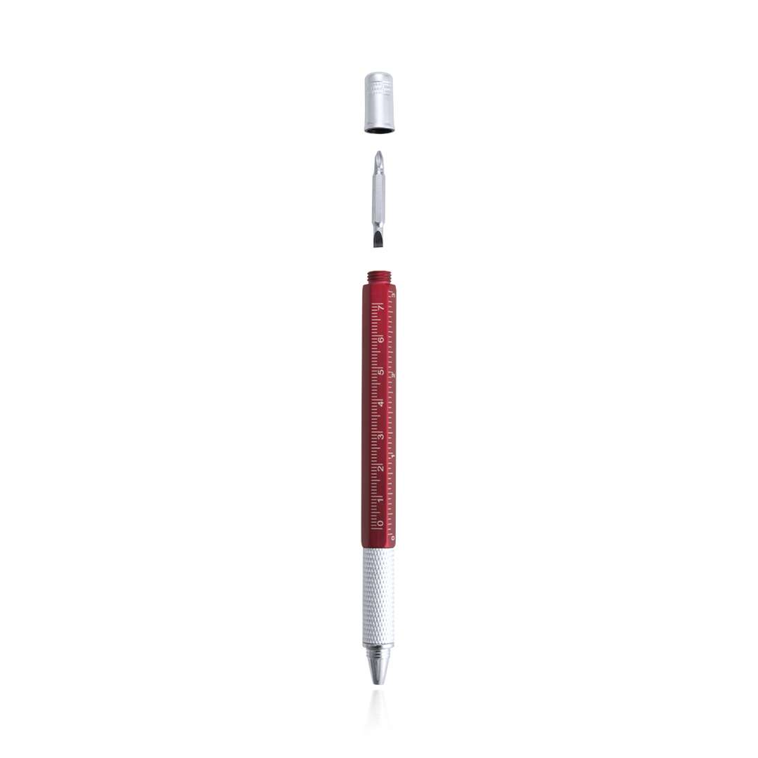 Penna multiutensile 4 in 1 con meccanismo a rotazione, in diversi colori e con impugnatura morbida. Con livella integrata, righello metrico in centimetri/pollici e cacciavite a doppia testa, piatta e a croce. Con clip in metallo e inchiostro blu.