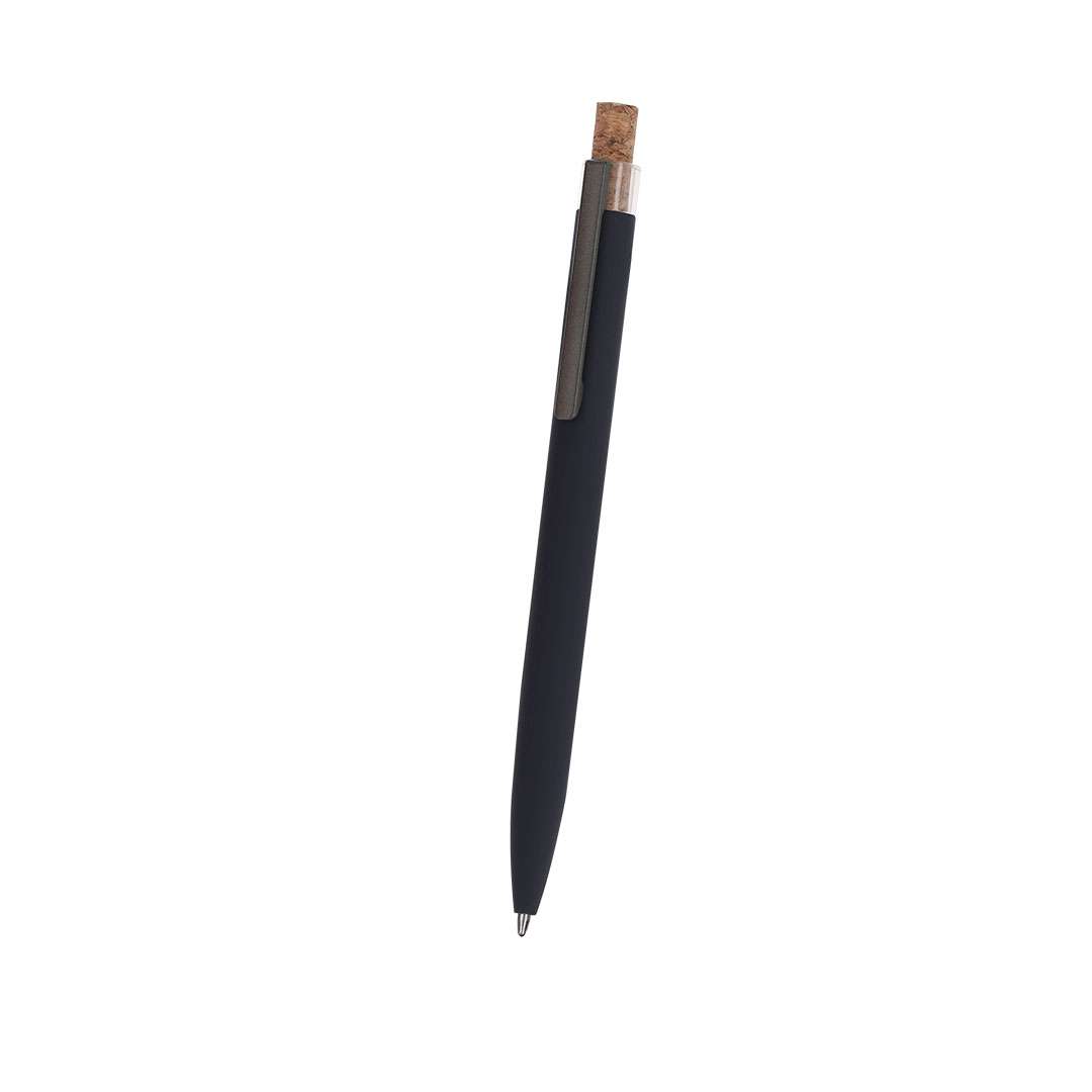 Penna a sfera a meccanismo a pulsante realizzata in alluminio riciclato. Pulsante in sughero e corpo con finitura gomma, progettato specialmente per il marcaggio laser. Clip metallico e distintivo alluminio riciclato nella parte superiore della penna. Con cartuccia jumbo e inchiostro blu. L'alluminio riciclato è un materiale con possibilità di riciclo quasi infinite, senza perdere le sue proprietà originali e consumando meno energia in questo processo.Certificazione GRS (Global Recycled Standard / Standard di Riciclo Globale), che garantisce l'origine riciclata del materiale utilizzato per fabbricare il prodotto.