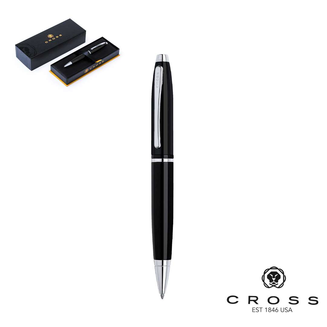 Penna a sfera Calais di Cross. Con meccanismo retrattile, elegante design bicolore e corpo in metallo con finitura liscia in vari colori. Presentata in un elegante astuccio singolo in nero, con il logo del marchio e interno in morbido velluto. Inchiostro nero.