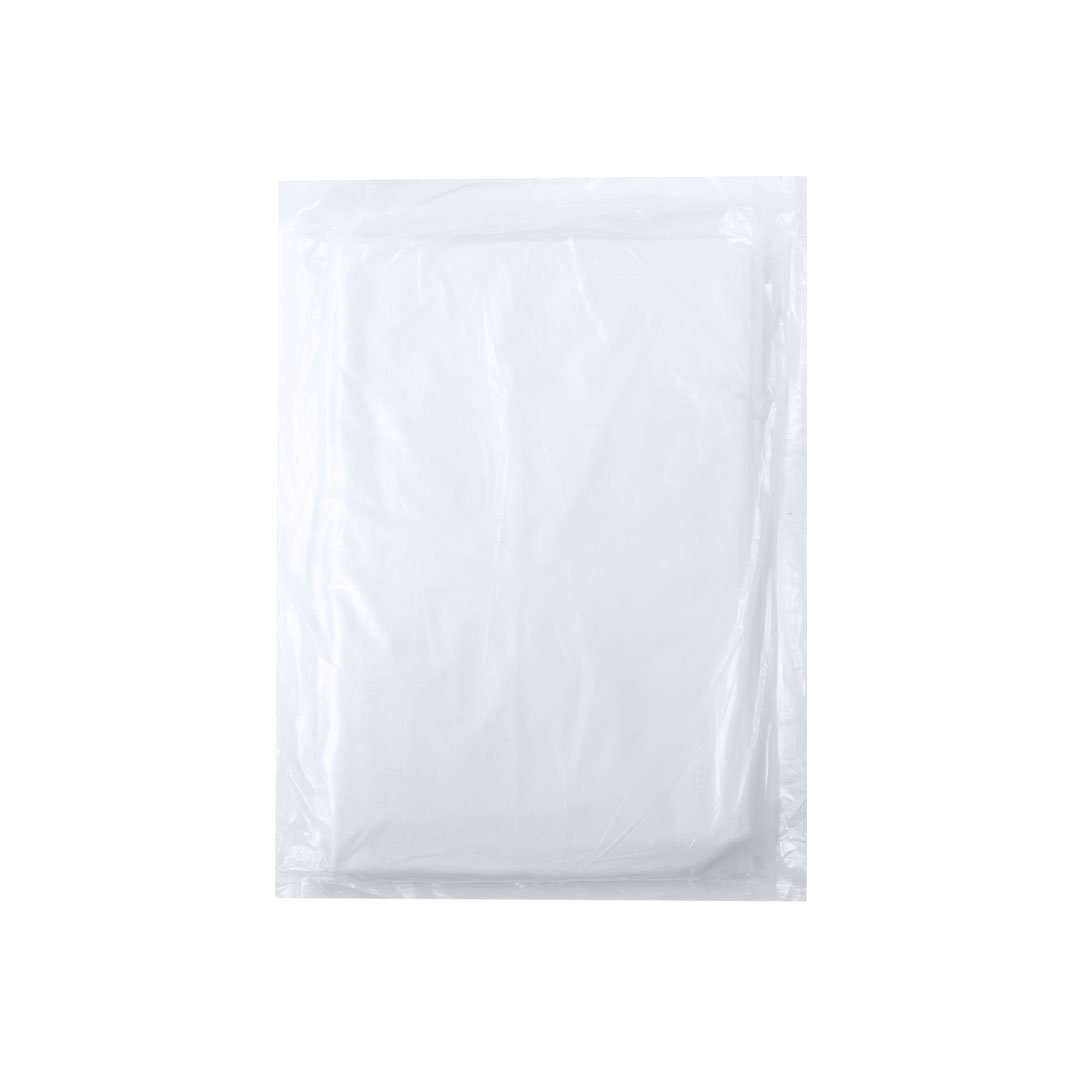 Poncho per adulti realizzato in materiale PLA resistente -Acido polilattico-, ottenuto da risorse naturali al 100% come amido di mais, manioca o canna da zucchero e che può diventare compostabile al 100% alla fine del suo ciclo di vita utile. Misura 127 x102 cm - misura unica - e presentato in una singola borsa in PLA con un materiale distintivo.