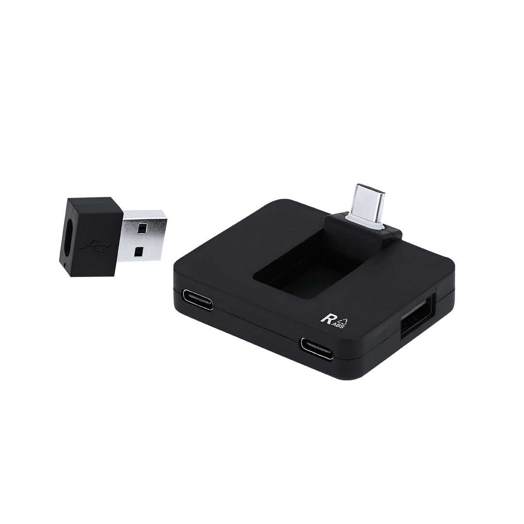 Porto USB 2.0 realizzato in ABS riciclato (RABS). Include 2 porte di tipo C e 2 porte USB, con ingresso duale USB/di tipo C.Il RABS è una plastica altamente riciclabile di grande resistenza e con molteplici applicazioni che lo rendono una soluzione eco-friendly.2 Porte di tipo C. 2 Porte USB 2.0