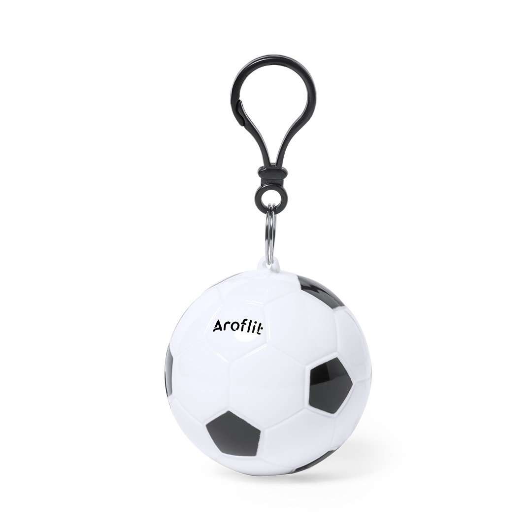 Poncho portachiavi con design originale del calcio. Poncho interno in taglia unica per adulti, misura 120x90cm in LDPE. Include un moschettone per il trasporto, con ampia area di stampa.