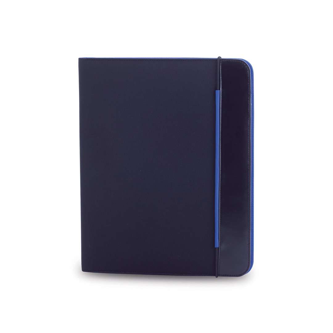 Cartellina dal design bicolore dai colori vivaci, rifinita in morbida microfibra con chiusura elastica. Interno in tinta con block notes estraibile da 20 fogli bianchi, tasca con patta, portacarte e portapenne.