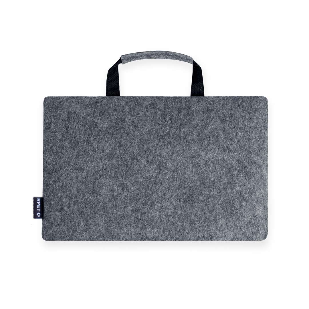 Portadocumenti in resistente feltro RPET effetto melange. Scomparto principale con cerniera per laptop fino a 15" e piccola tasca interna. Con robusti manici abbinati con dettagli neri. Logo RPET sull'etichetta esterna. Il feltro RPET è il risultato dell'unione del processo di riciclo delle materie plastiche con l'antica tecnica di produzione del feltro, dando vita a un materiale di eco-tendenza che, oltre a essere di origine riciclata, diventa anche riciclabile.