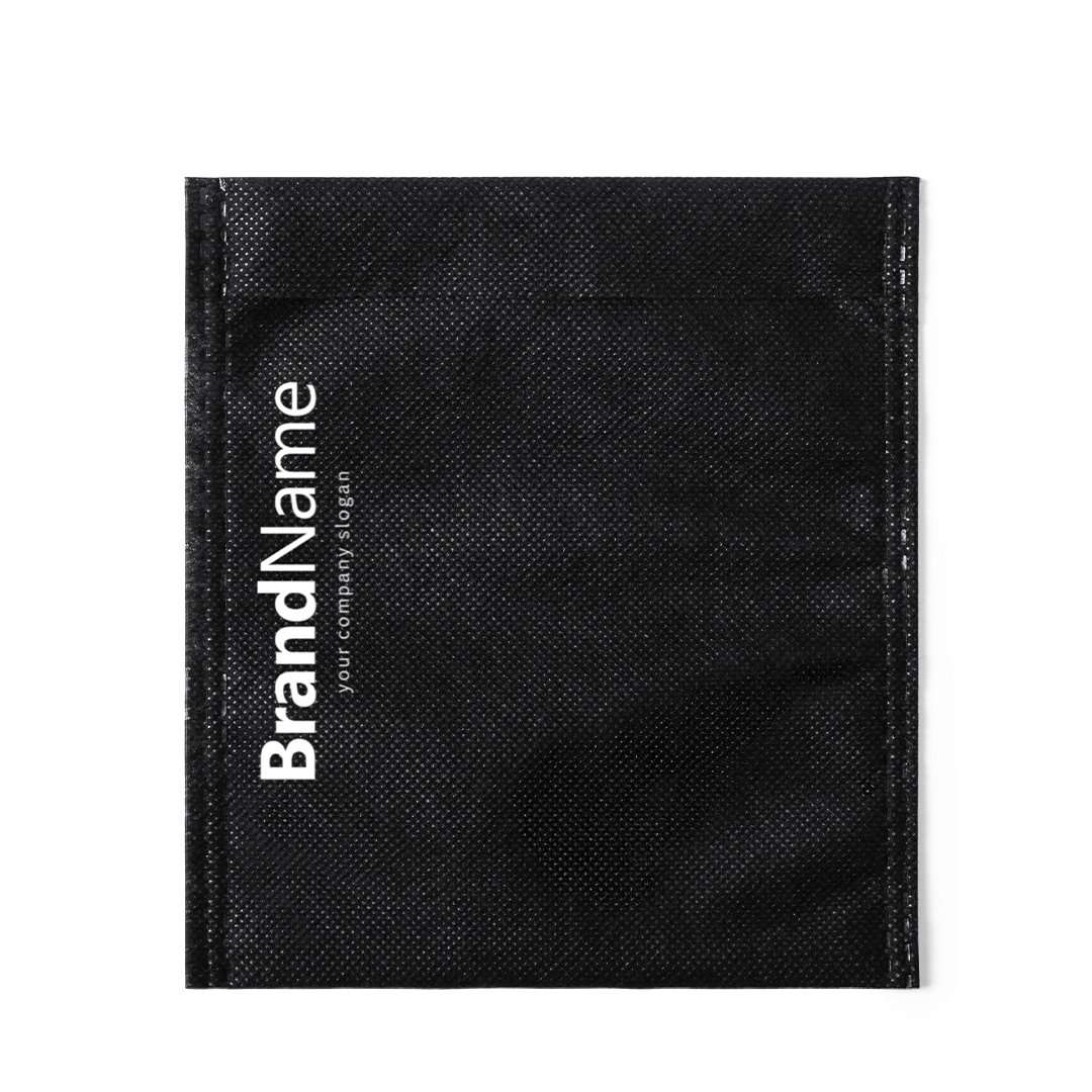 Copertina multiuso realizzata in tessuto non tessuto nero con finitura termosaldata, traspirante e lavabile. Di dimensioni compatte e ideale per la stampa.