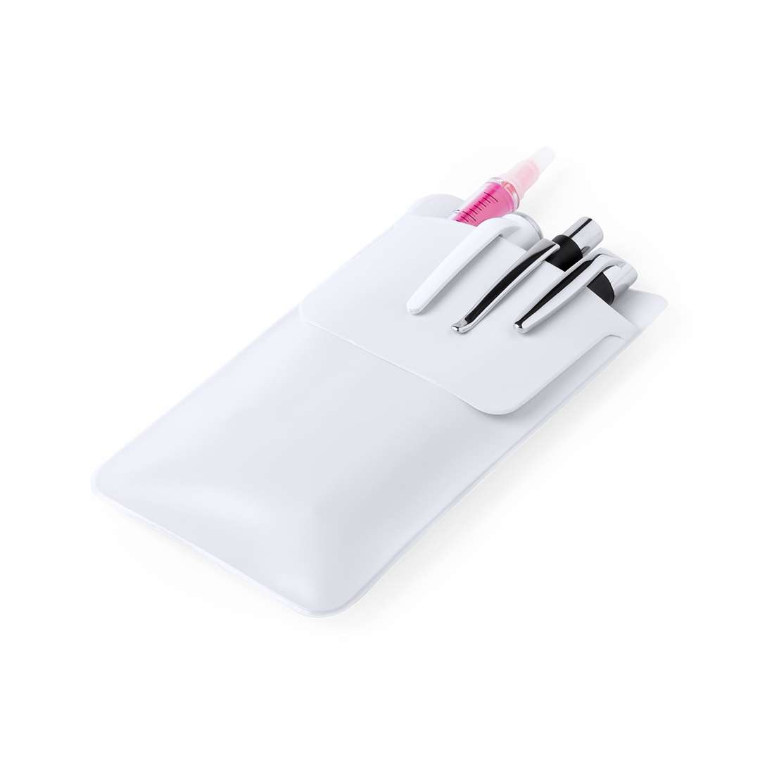 Proteggi-tasca per riporre penne e altri utensili. In PVC resistente con finitura termosaldata, con lembo per facilitare la stampa