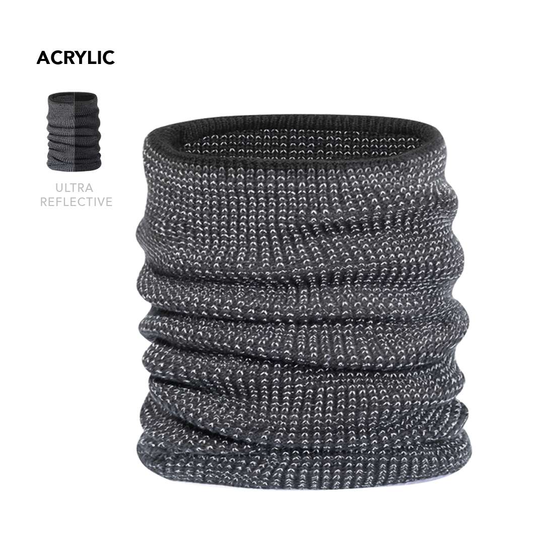 Caldo scaldacollo riflettente in maglia a coste, realizzata in morbido materiale acrilico elastico in combinazione con poliestere e interno in morbido polar fleece. Include un filo riflettente intrecciato nel tessuto per aumentare la visibilità.