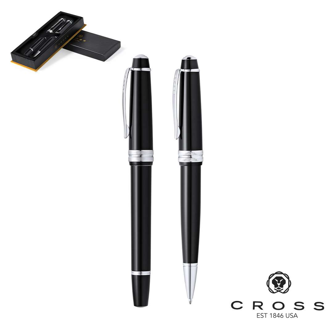 Set di penne biro e roller Bailey Light Cross, che combina una resina lucida con finiture metalliche cromate lucide. Cartuccia Jumbo e inchiostro nero. Confezionato in un elegante astuccio nero individuale con logo Cross e fodera in morbida pelle scamosciata.