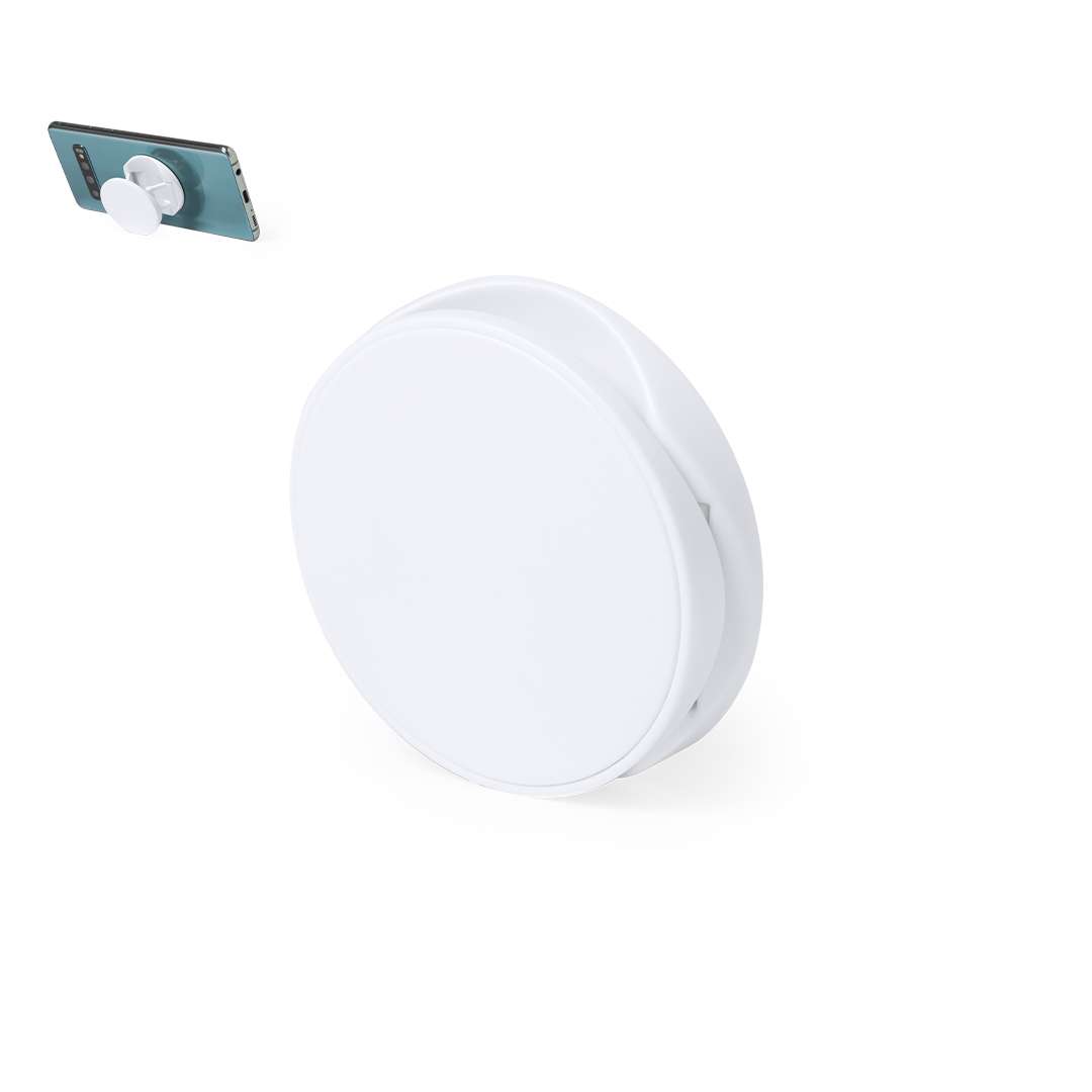 Supporto per smartphone pieghevole in un'elegante finitura bianca, appositamente progettato per la tampografia. Con adesivo 3M, fissaggio extra forte e privo di residui quando viene rimosso dal dispositivo.