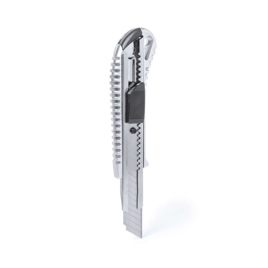Taglierina realizzata in una combinazione di materiali in acciaio inox e alluminio con lama larga e impugnatura ergonomica fustellata. Cappuccio rimovibile per la regolazione del taglio della lama.