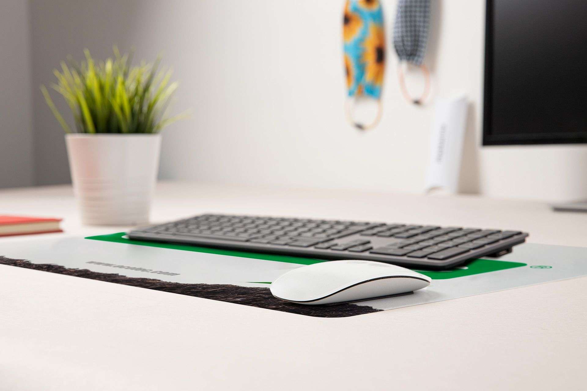 Formato studiato per diventare un sottomano da scrivania con ampio spazio personalizzabile. Sottile e aderente.