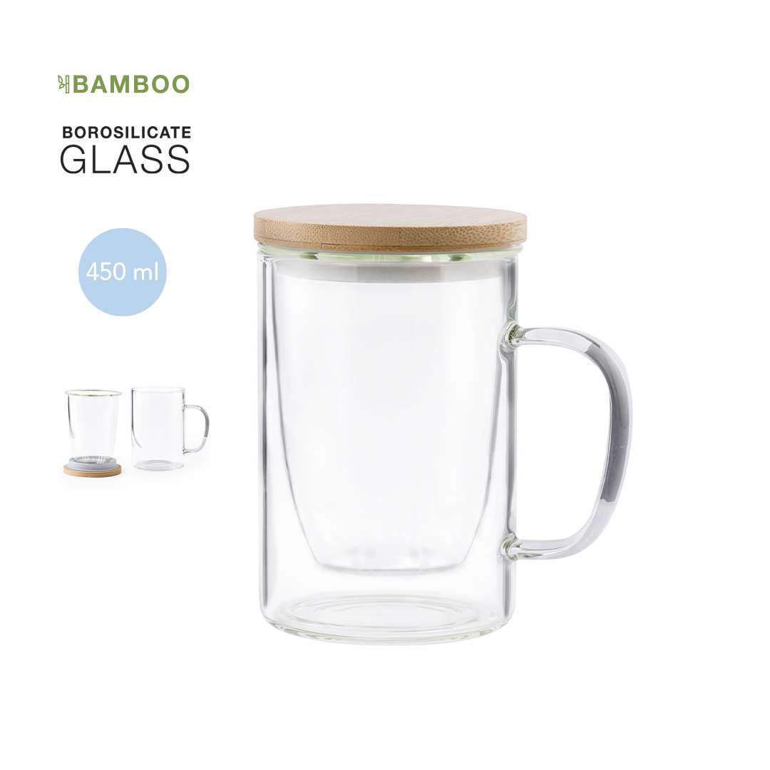 Tazza per infusioni della linea natura, di alta qualità con capacità di 450 ml, con infusore incluso. Realizzato in vetro borosilicato, che offre una resistenza e una durata eccezionali, estendendo la sua vita utile e permettendo di riutilizzarlo innumerevoli volte. Coperchio in bambù senza BPA.Confezionato in un'attraente scatola di eco-design.