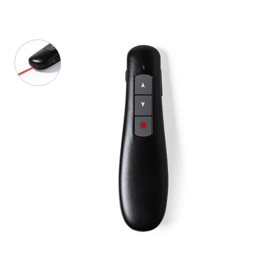 Puntatore laser wireless per presentazioni. Dal design ergonomico, include un accessorio plug play per collegarlo alla porta USB del computer, senza la necessità di installare software aggiuntivi per il suo corretto funzionamento. Compatibile con una moltitudine di sistemi operativi (Windows, OS X, Linux e Android). Con pulsanti avanti/pausa/indietro/volume e alimentazione a batteria: 2xAAA inclusa. Confezionato in un elegante e resistente astuccio di cartone nero, con copertina e interno fustellato in schiuma. Manuale di istruzioni in inglese e spagnolo.